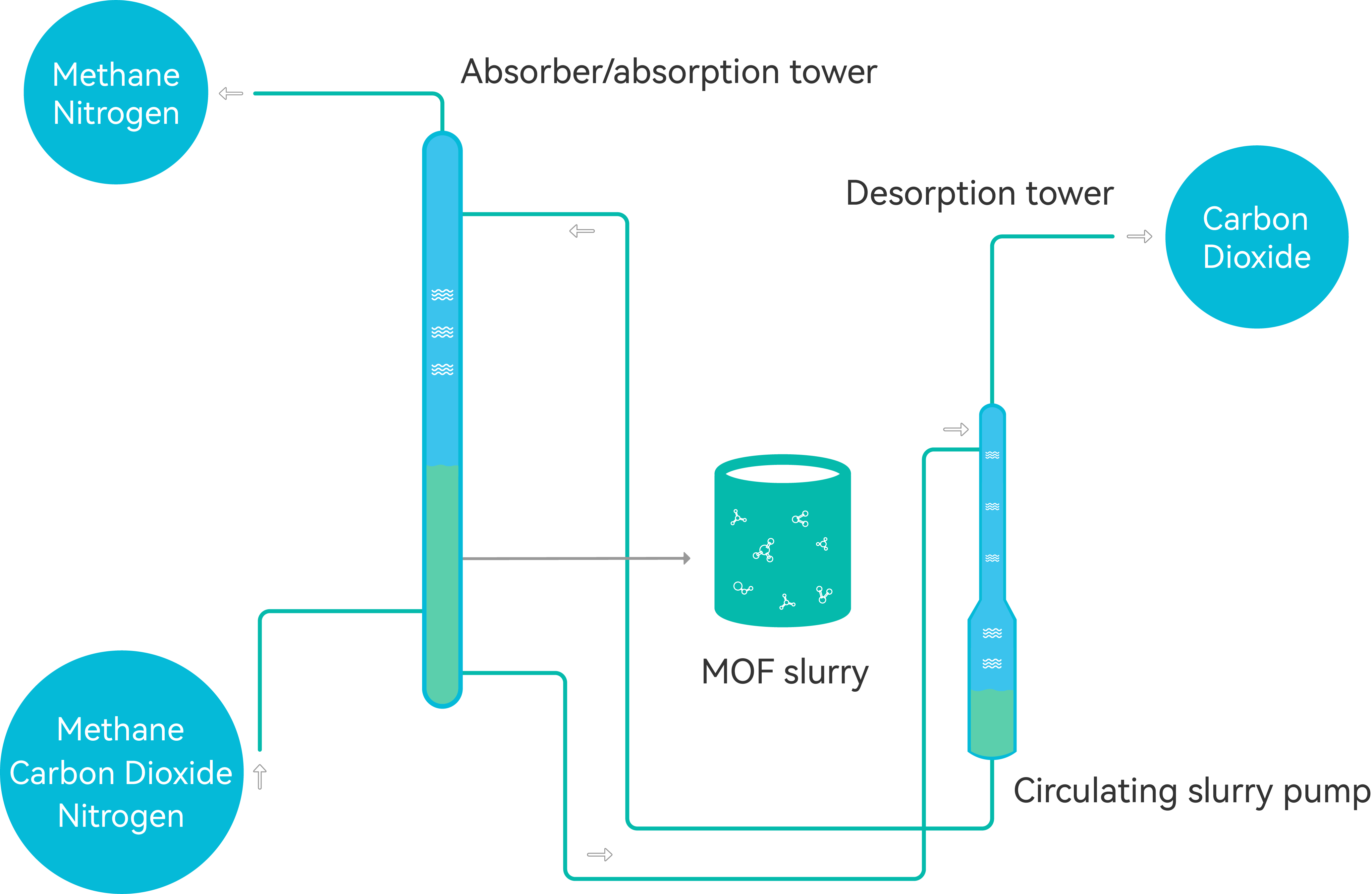 The first MOF slurry-based carbon capture project in China, developed by Basemof, was completed and put into operation in 2023. Designed with a daily capacity of 150,000 m3, the project represents the largest single-unit MOF carbon capture project in the world, enabling an annual natural gas recovery of 30,000,000 m3, a liquid carbon dioxide output of 50,000 tons per year, and a total carbon emission reduction exceeding 100,000 tons. Currently, the project has achieved an electricity consumption of 0.73 GJ and thermal consumption of 0.84 GJ per ton of captured carbon dioxide, with a captured gas concentration of 98.5%, and capture rate of greater than 93%. Compared with conventional approaches, the operating energy consumption is reduced by 30%.